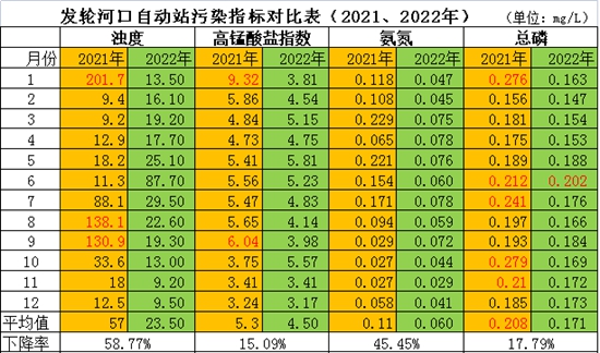 ????球溪河的氨氮指標(biāo)本生就很低,這個指標(biāo)達標(biāo)不困難,但從對比數(shù)據(jù)上看,它的下降率達到了45%。這點也充分印證了制劑對消解影響氨氮指標(biāo)的污染物的效率更高。