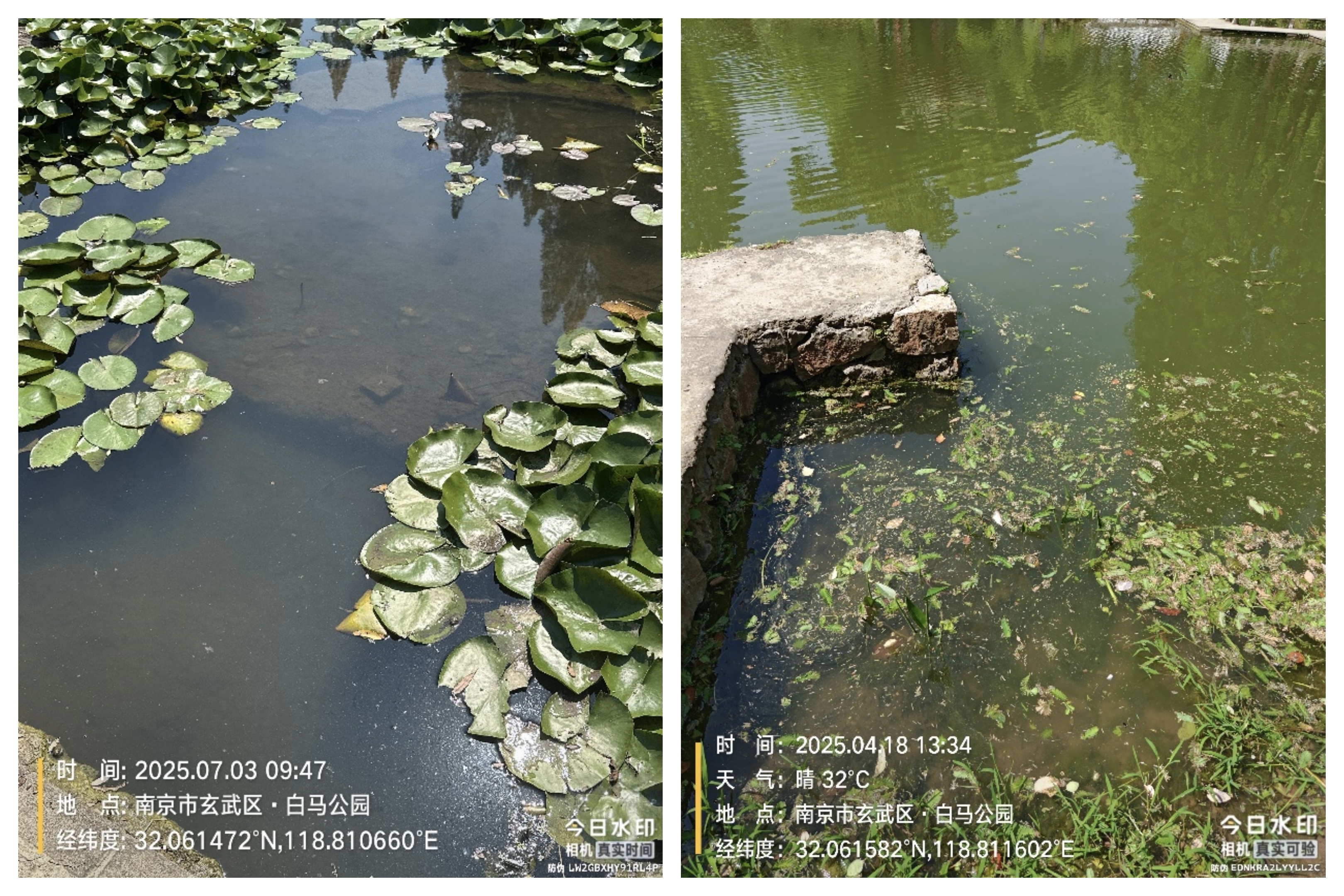 在鐘山風(fēng)景區(qū)的蔥蘢懷抱中,玄武區(qū)白馬公園的白馬湖曾悄然蒙塵。這片51.6畝的水域,由低洼水塘拓展而生,二十余載歲月里,流動(dòng)的韻律日漸遲滯,水華滋蔓,感官蒙翳,仿佛明珠失卻了靈動(dòng)光華。